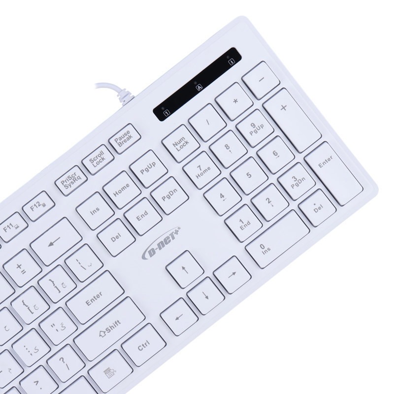 کیبورد دی نت DT-991 یک کیبورد با سیم با طراحی مقاوم و کاربردی برای استفاده روزمره، اداری و خانگی است. این کیبورد دارای کلیدهای فیزیکی با حروف فارسی حک شده، کلیدهای مولتی مدیا و نشانگر LED جهت نمایش وضعیت کارکرد است. بدنه مقاوم در برابر ضربه و رطوبت و پایههای قابل تنظیم ارتفاع، تجربه تایپ راحت و امن را تضمین میکنند. اتصال با USB، استفاده آسان و بدون دردسر را برای کاربران فراهم میکند.