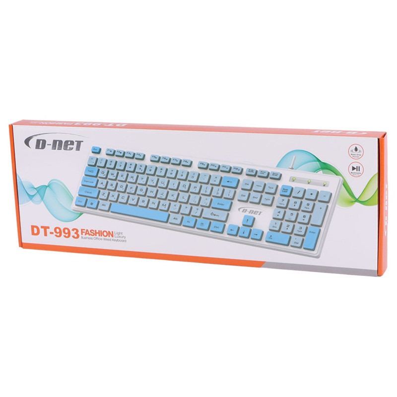 کیبورد دی نت DT-993 یک کیبورد با سیم با طراحی مقاوم و کاربردی برای استفاده روزمره، اداری و خانگی است. این کیبورد دارای 104 کلید فیزیکی با حروف فارسی حک شده، کلیدهای مولتی مدیا و Fn و نمایشگر LED برای نمایش وضعیت کارکرد است. اتصال با کابل USB و ولتاژ کاری 5 ولت، استفاده ساده و بدون دردسر را فراهم میکند. پایههای قابل تنظیم ارتفاع راحتی تایپ طولانی را تضمین میکنند.