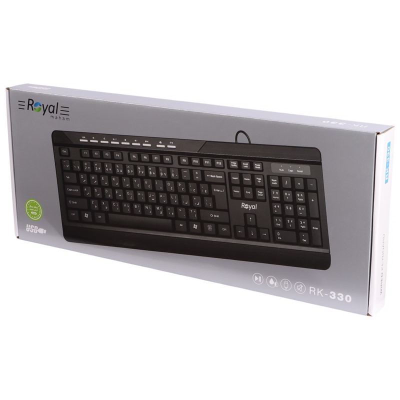 کیبورد رویال RK-330 یک کیبورد با سیم با طراحی مقاوم و کاربرپسند برای استفاده روزمره و اداری است. بدنه مقاوم در برابر آب، ضربه و فشار، کلیدهای فارسی حک شده و کلیدهای مولتی مدیا تجربه تایپ راحت و ایمن را فراهم میکنند. LED روی بدنه وضعیت کارکرد کیبورد را نشان میدهد و پایه قابل تنظیم ارتفاع، راحتی تایپ طولانی را تضمین میکند. اتصال USB Plug and Play با کابل 1.45 متری، استفاده آسان و بدون دردسر را فراهم میکند.