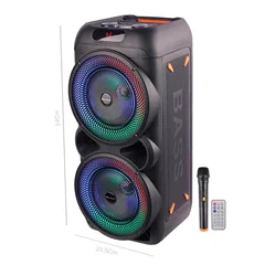 با اسپیکر چمدانی بی سیم قابل حمل KTS-1819 به همراه میکروفون و ریموت کنترل ، تجربهای بینظیر از کیفیت صدا و امکانات کامل را به خانه بیاورید! این اسپیکر با قابلیت پخش از رم و فلش، همراه با میکروفون و ریموت کنترل، هر مهمانی را به اوج هیجان میرساند. طراحی چمدانی آن حملونقل را آسان کرده و مناسب هر محیطی است. همین حالا لذت موسیقی بدون محدودیت را تجربه کنید!